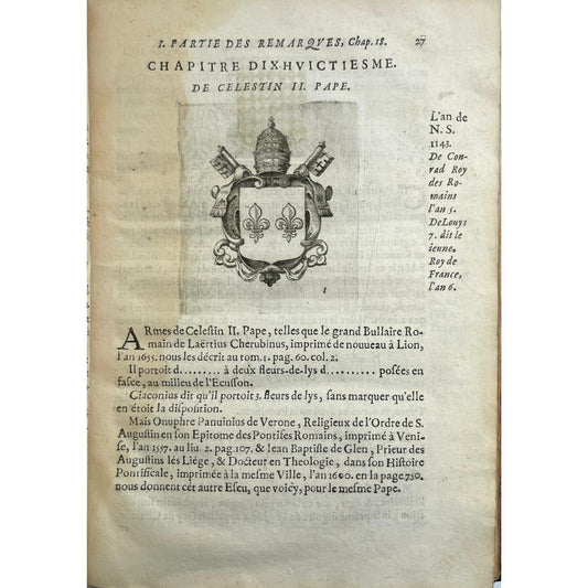Remarques sur les souverains Pontifes Romains, qui ont tenu le saint siege, depuis Celestin II. jusqu'a maintenant