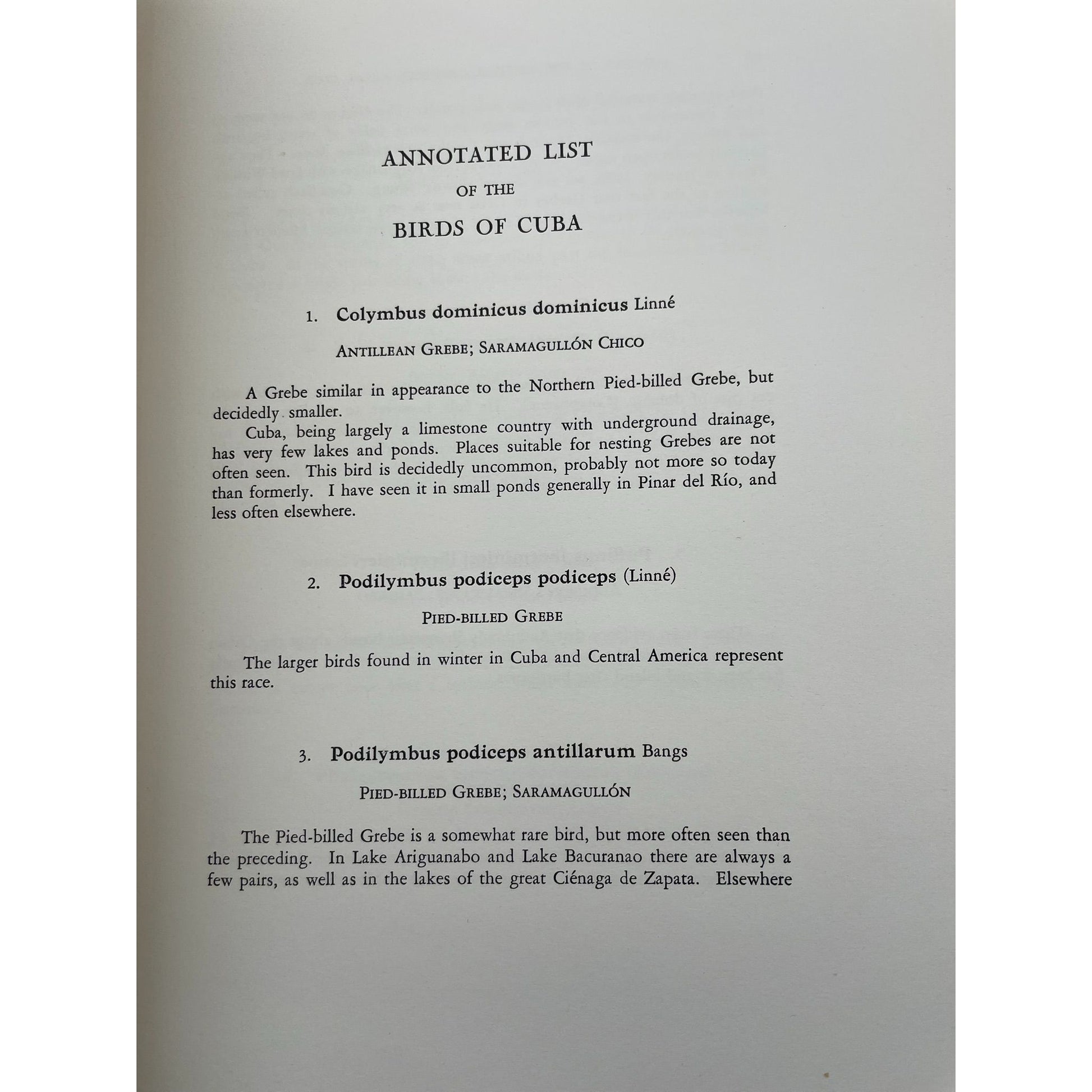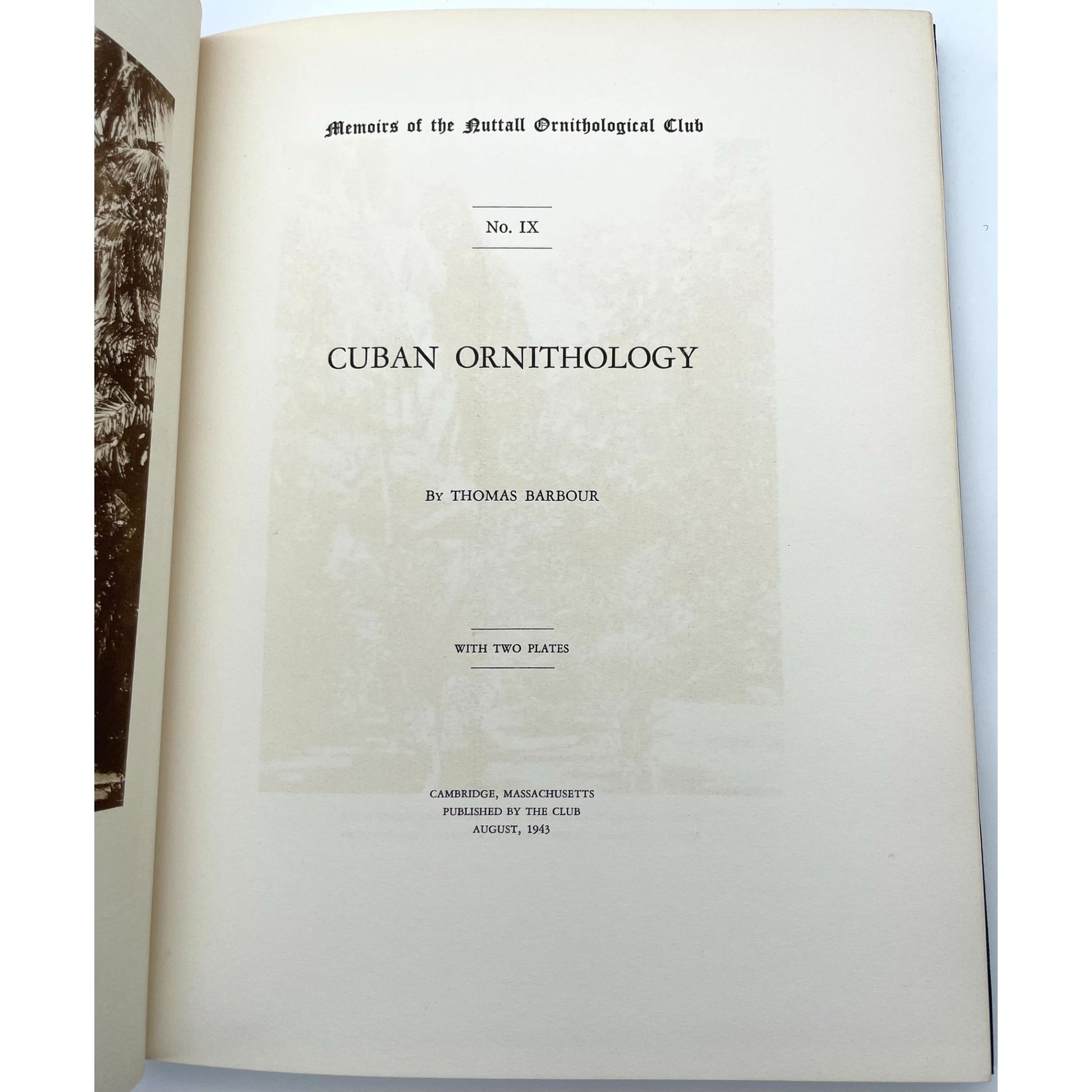 Description: Annotated list of the birds of Cuba by noted ornithologist Thomas Barbour. No. IX of the Memoirs of the Nuttall Ornithological Club. First edition. Bound in full green cloth with gilt lettering on the spine; in plain dust wrapper. With two photogravure plates depicting the Botanical Garden of the Atkins Institution of the Arnold Arboretum (now known as Jardín Botánico de Cienfuegos). 11 x 9 inches; 144 pages, [2] leaves of plates.