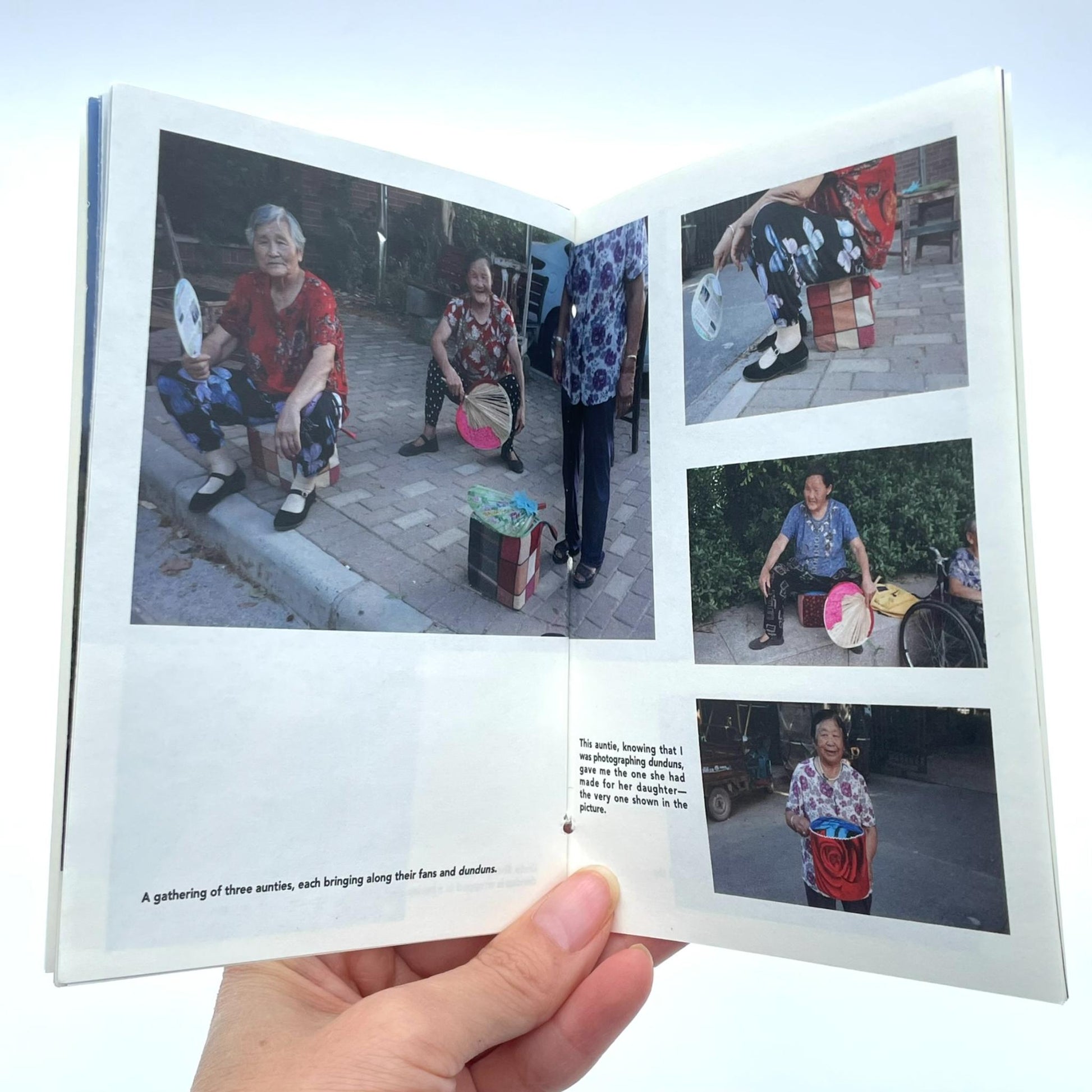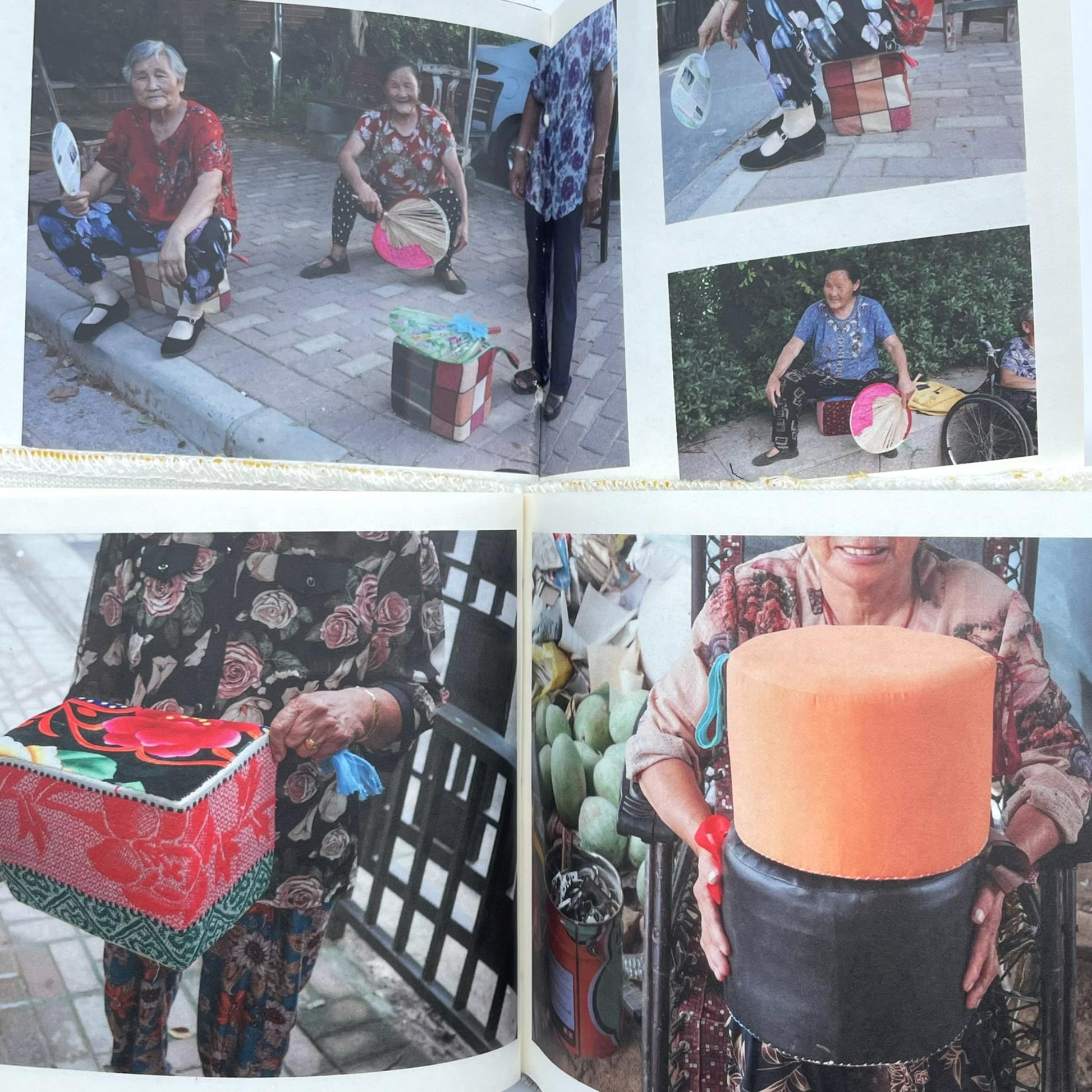 Description: Artist's book celebrating DunDun, stools handcrafted by displaced villagers from rural Dameng, Henan Province, China using found materials, like discarded insulation foam from the construction sites in the location of their former homes. The villagers use DunDun to sit with other villagers and re-constitute a sense of community in their now fragmented world. In English and Chinese. Each copy of DunDun is unique, with textiles made from recycled curtains, pillowcases, bed sheets, and sofa coverings. Consists of two zines containing chiefly color photo illustrations, housed in cloth envelope. First zine "Dun Dun" sewn with white thread in transparent plastic wrapper; 5.5 x 4 inches; [40] pages, including [2] foldout leaves. Second zine "(dūn)" sewn with white thread in cloth wrapper; 4.25 x 6.25 inches; [88] pages. Clean and crisp. Fine.