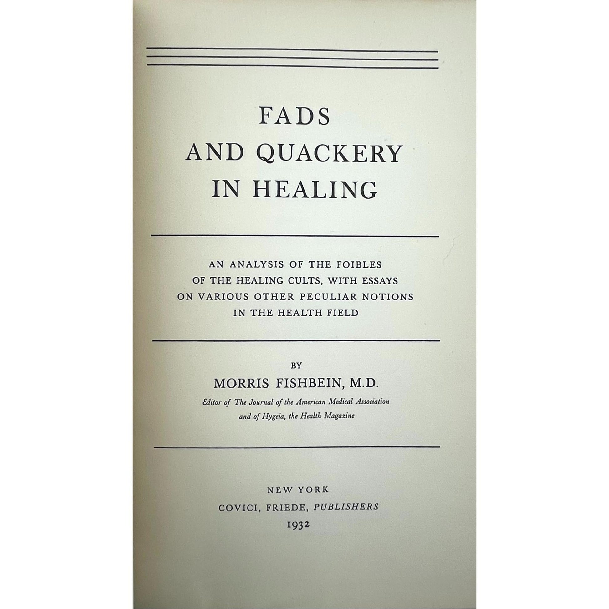 Description: A history of medical fads, quackery, and cults, by Morris Fishbein, editor of the Journal of the American Medical Association. Topics include homeopathy, eclecticism, Christian Science, osteopathy, chiropractic, naturopathy, physical culture, and beauty cults. First edition (Most other copies on the market are published by Blue Ribbon Books and are reprints). Bound in full brown cloth over boards, stamped in silver. 8.75 x 5.75 inches; [12], 384 pages. Bookplate of Dr. James J. Conway, Chicago radiologist and book collector, on front pastedown. Signature of another former owner on front free endpaper. Binding with light edgewear, interior with light toning. Very Good. Some essays previously appeared in "The Medical Follies" and "The New Medical Follies."