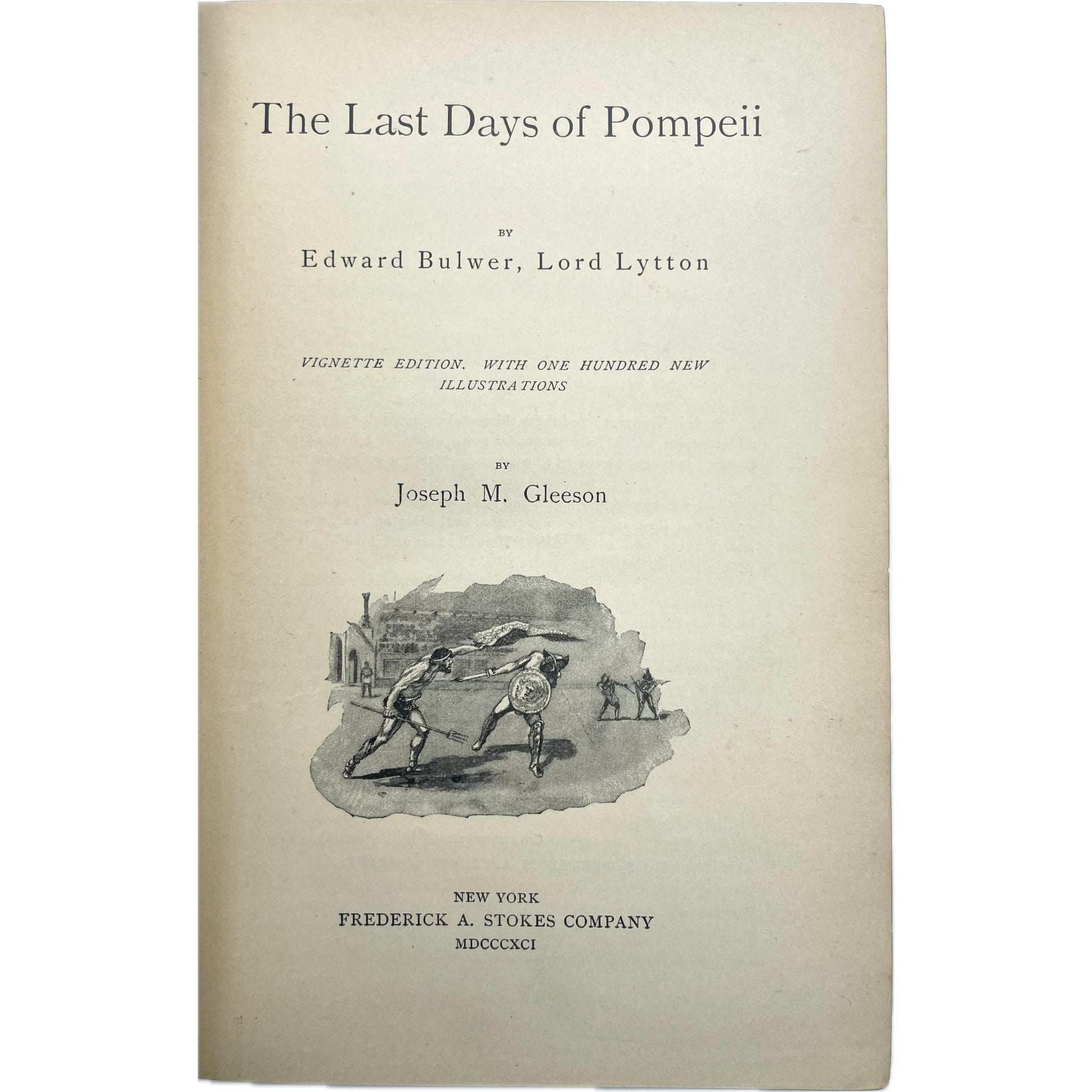 Description: Novel set in Pompeii in AD 79 during the period of the eruption of Mount Vesuvius. Vignette Edition, with 100 black-and-white illustrations by Joseph M. Gleeson. Bound in full green cloth, stamped in gilt and silver, with all edges gilt. 7.75 x 5.25 inches; xii, 503, [1] pages. Signature of former owner Del Miller on front free endpaper. Binding with moderate scuffing and edgewear, mild foxing to endpapers, and cracked hinges. Good only.