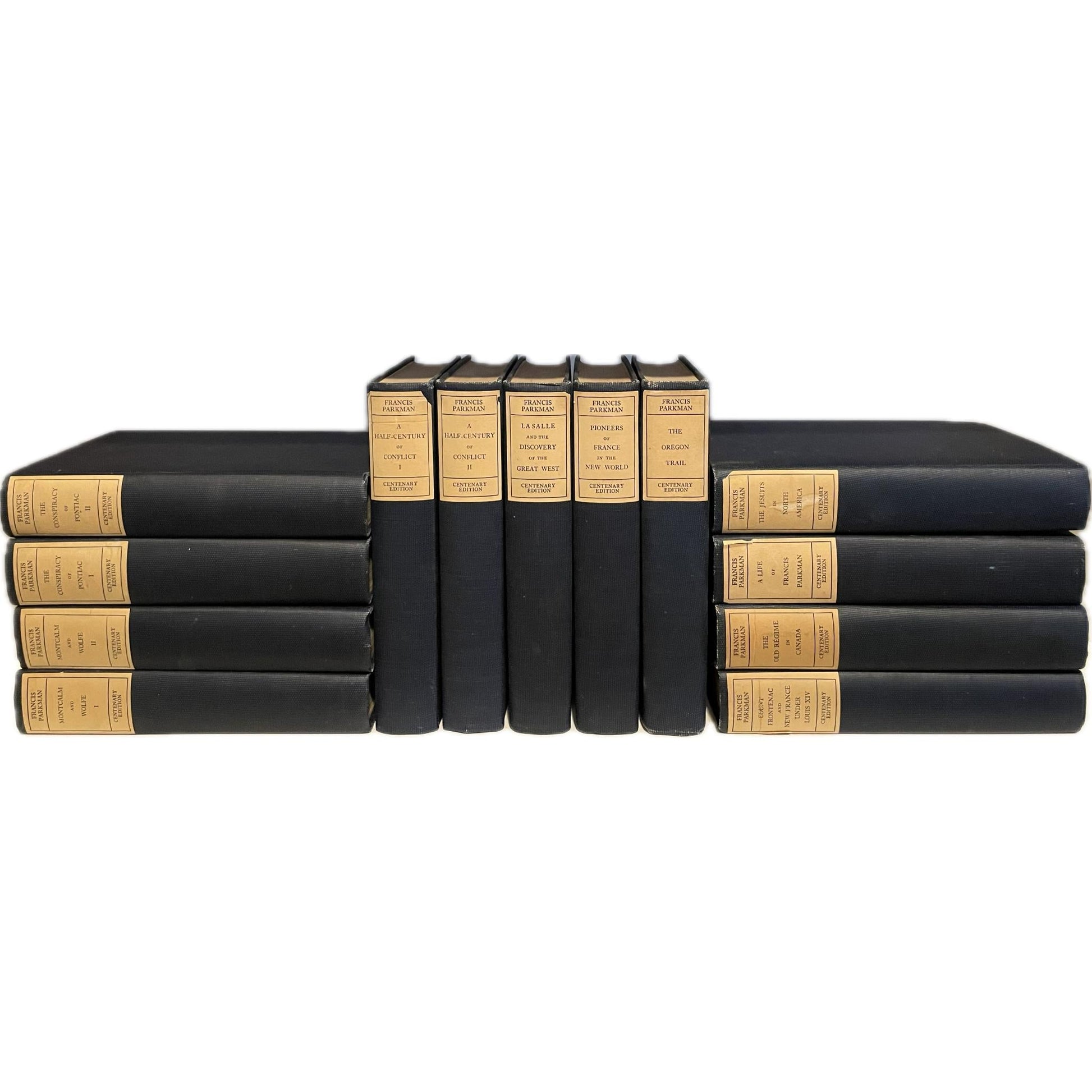 Description: The works of historian Francis Parkman and a biography of the author, complete in 13 volumes. Centenary Edition. Black-and-white frontispieces. Bound in publisher's full navy cloth over boards, with paper title label lettered in blue on spine and additional title label tipped-in at rear endpaper. 8.25 x 5.5 inches; 20 inches of shelf space; 13 volumes (various pagings). Bindings with moderate wear and spots of soiling, small chips to edges of some title labels, and foxing at text edges. Very Good. An attractive set.
